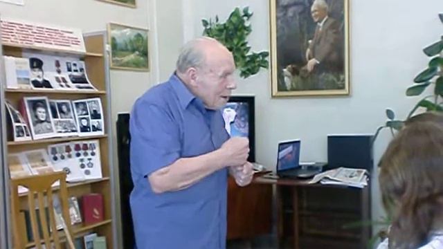 Старейший читатель библиотеки-филиала № 17 им. М. А. Шолохова (Волгоград) Владимир Иванович Марченко на встрече со школьниками. Мероприятие 2012 года.