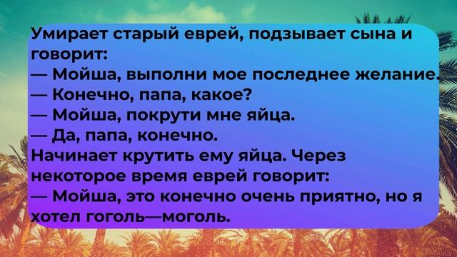 АНЕКДОТЫ. #анекдоты #анекдот про #смешные анекдоты #анекдоты самые #анекдот года #анекдоты самые смешные #анекдоты до слез #посмешней анекдот Мини сборник анекдотов повышающих настроение.Наш канал создан, чтобы принести еще больше позитивных эмоций. Здесь публикуются видео анекдоты, поднимающие настроения любому и в любой жизненной ситуации. Подписывайтесь если Вам понравилось, ставьте лайки, оставляйте комментарии и делитесь с друзьями. ПОДПИСЫВАЙТЕСЬ НА КАНАЛ!!! А мы с своей стороны будем радовать вас интересными историями и анекдотами. В этом видео используется трек Title: Dancing On The Beach,Artist: Davor Devcic (2:06). Данный трек используется в программе (видеоредактор) Movavi. Я являюсь пользователем вышеуказанной программы,а все пользователи программ Movavi, могут использовать контент программы для YouTube, Rutube и подобных платформах. Музыка в программе используется по лицензии сервиса, предоставляющего бесплатное аудио - Jamendo https://www.jamendo.com/ Также прилагаю сертификат на трек Dancing on the beach. Title of the project: Movavi Video Editor Plus License: Large License description: Includes online usages (Youtube, advertising, ...) Unlimited radio listeners and attendants at conferences, festivals, fairs... Unlimited app downloads (mobile and tablets) Up to 50,000 physical copies (DVD, videogame...) Up to 100,000 cinema views and 1,000,000 TV views Duration: unlimited since 10/08/2022 Territory: International & Internet Title: Dancing On The Beach Artist: Davor Devcic