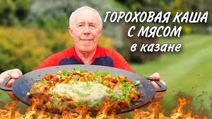 БОГАТЫРСКАЯ КАША ДЛЯ ВЗРОСЛЫХ _ ГОРОХОВАЯ с ЖАРЕНОЙ ПУЗАНИНОЙ и ГРИБАМИ в КАЗАНЕ НА костре