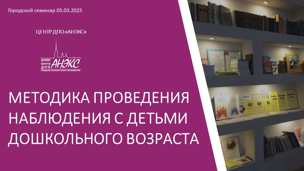 Ведущие: Бутина Ольга Анатольевна, Старший преподаватель кафедры дошкольного образования ГАОУ ДПО "Ленинградского областного института развития образования" , почетный работник общего образования. Секции: - Проведение мини-наблюдения в группе детского сада - Роль наблюдений в мотивации к художественно-эстетической деятельности детей Что вас ждет: Цель: ознакомление слушателей с методикой проведения наблюдения с детьми дошкольного возраста в детском саду. Вопросы для обсуждения: Значение наблюдений в познавательной активности дошкольников. Виды наблюдений: естественные наблюдения (в повседневной жизни); организованные наблюдения (специально организованная деятельность); длительные и кратковременные наблюдения; индивидуальные и коллективные наблюдения. Методика проведения наблюдений с разными возрастными группами.