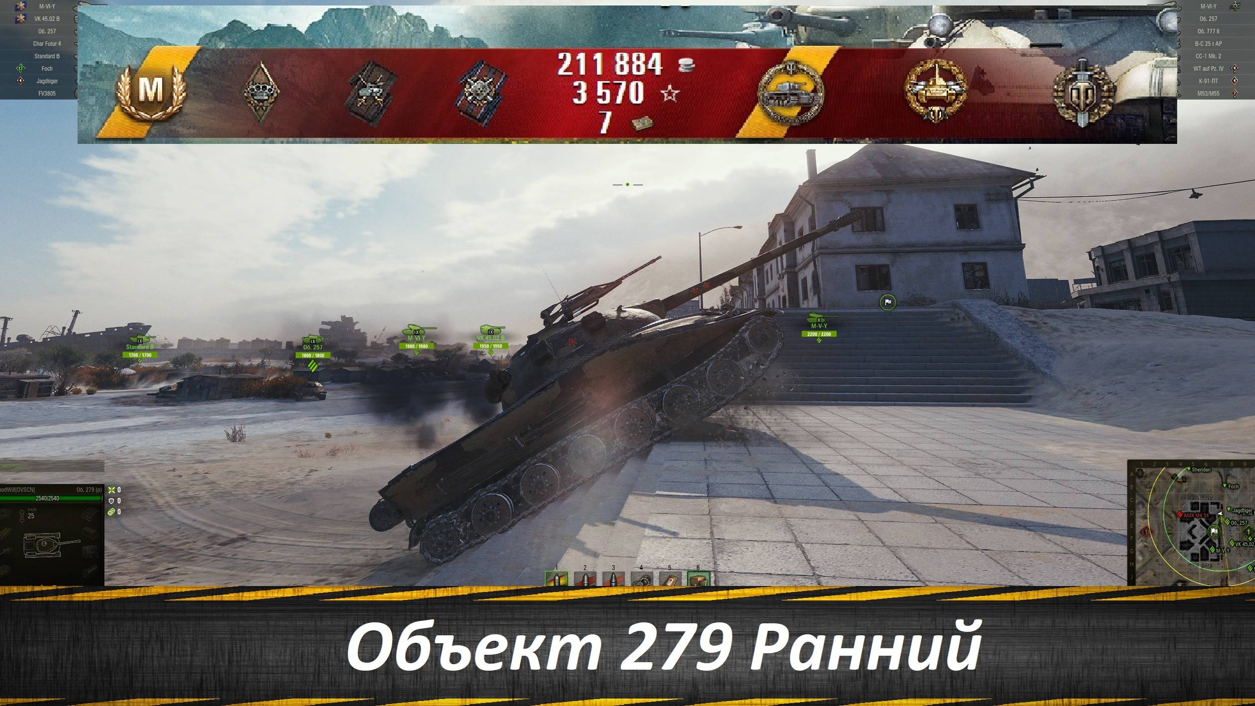 Объект 279 Ранний, 9879 урона, 7 уничтоженных, 6 наград
