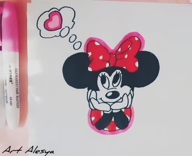 Рисую мышку Минни!❤️