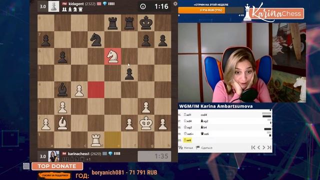 Титульный вторник на chess.com 11 туров 3+1 Поддержать канал: https://www.donationalerts.com/r/karinachess1 Обучающее сообщество и доступ к бонусам: https://boosty.to/karinachess Подписаться на мой канал: https://www.youtube.com/channel/UChor8u_hhgrjX2lt0QLzZHA?sub_confirmation=1 Курс "Пешечные структуры" https://vk.com/@karinachessclub-peshechnye-struktury Курс "Принципы атаки и защиты в шахматах" https://vk.com/@karinachessclub-attackdefence Рестрим: https://www.twitch.tv/karinachess1 Рада приветствовать Вас на канале женского международного гроссмейстера, международного мастера Карины Амбарцумовой! Я - профессиональная шахматистка и тренер. Здесь вы сможете найти обучающие видеоуроки по шахматам, комментарии турниров, стримы моей игры в блиц шахматы. Подписывайтесь на мои странички в соц.сетях: ВКонтакте: https://vk.com/karinachessclub Telegram: https://t.me/karinachess Instagram: https://www.instagram.com/1karinala7/ Twitch: https://www.twitch.tv/karinachess1 Почта для связи: karinachess@mail.ru Мой сайт: http://chesscoach.ru/ #шахматы #КаринаАмбарцумова #стримшахмат #шахматыблиц