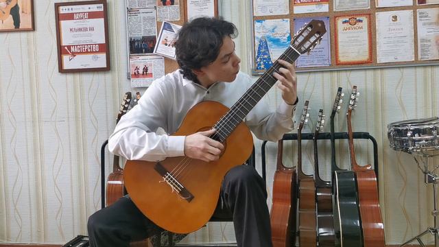 Никулин Андрей Михайлович, МБУ ДО "ДШИ №1" г.о. Чапаевск, номинация "Струнно-щипковые инструменты (гитара)", 4 возр группа. Г.Гендель "Фугетта", Р.н.п. "Я на печке молотила" в обр. С. Руднева, Э Вилла-Лобос "Этюд №1".
