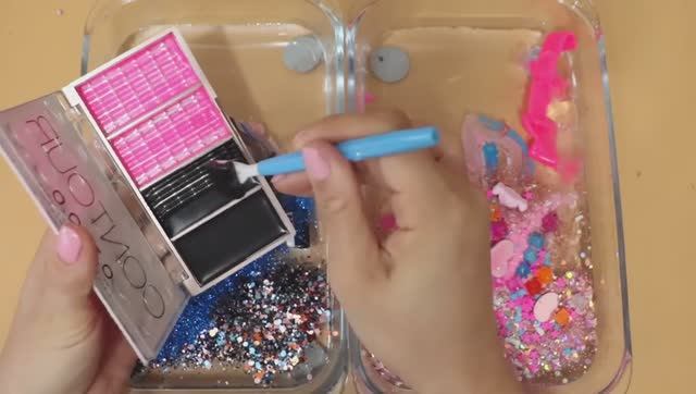 Смешиваем «чёрные и розовые» цвета в слайм! Увлекательное видео со слаймом!★ASMR★