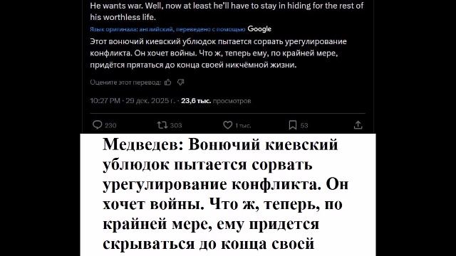 Медведев: Вонючий киевский ублюдок пытается сорвать урегулирование конфликта.