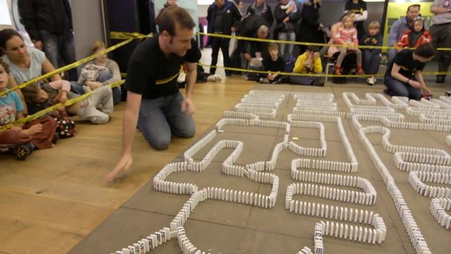 Matt Parker and a team of Domino Computer Builders balanced over 10,000 dominoes in a carefully designed circuit. The result was a Domino Computer capable of automatically adding numbers. It can take any two four-digit binary numbers and return the five-digit binary sum. It's a computer, made of dominoes. Watch the Numberphile where Matt explains more of the maths: http://youtu.be/lNuPy-r1GuQ As well as the secret Numberphile bonus interview: http://youtu.be/rEw2hE8ZRlY There are free worksheets and teaching resources about binary numbers and logic gates here: http://think-maths.co.uk/downloads/domino-computer-worksheets Computer design: Matt Parker, Katie Steckles, Paul Taylor, Andrew Taylor, Siân Fryer Builders: Ben Curtis, Becky Smedley, Mike Bell, Blair Lavelle, Andrew Pontzen, Jonathan Sanderson, Elin Roberts, Chris Roberts, Ben Ashforth, Gillian Kiernan, David Julyan Thanks to Marieke Navin, Natalie Ireland, Nicola Frost and everyone at the Museum of Science and Industry who made this possible. http://www.mosi.org.uk/ Huge thanks to Jonathan Sanderson at StoryCog for making the video. http://storycog.com/