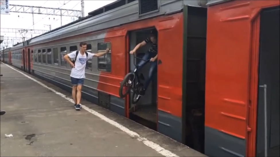 Красиво выпрыгнул из электрички
