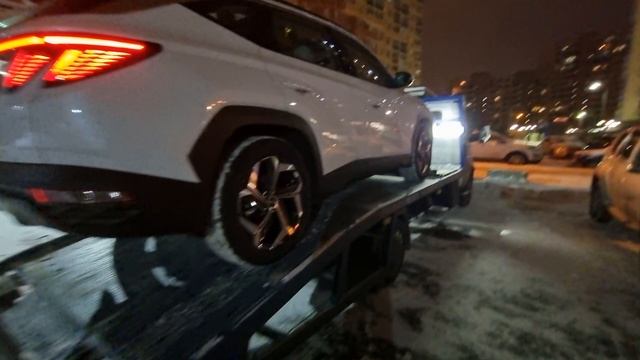 Hyundai Tucson на летней резине заезжает на эвакуатор