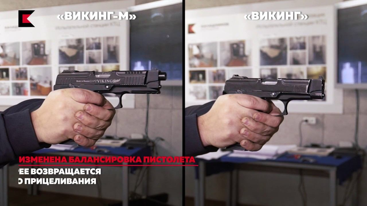 Концерн «Калашников» представляет модернизированную версию пистолета «Викинг» - «Викинг-М». Изменена балансировка пистолета. Он быстрее возвращается на линию прицеливания. Кнопка выброса магазина стала удобнее. Изменена форма направляющих в патроннике. Штатный магазин имеет однорядный выход патронов для удобства заряжания. Пистолет совместим и с магазинами с двухрядным выходом. Ствол удлинен и упрочнен в местах небольших нагрузок. Новый пистолет имеет планку Пикатинни. На пистолет можно установить прицельные приспособления стандарта Glock. Улучшена точность и кучность стрельбы. Рукоятка стала более эргономичной. Ресурс основных частей пистолета увеличен до 50 000 выстрелов.