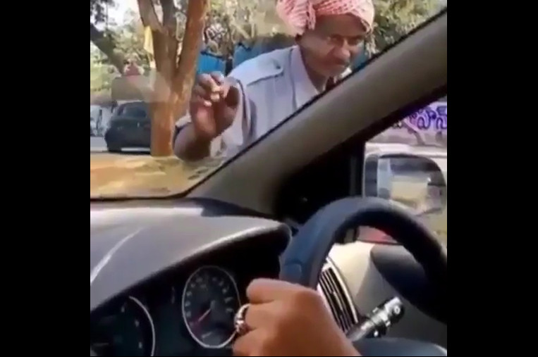 Мужчина попросил денег у людей в проезжающей машине, но они сказали ,что у них нет наличных денег и попрошайка продемонстрировал свой личный терминал для кредитных карт, насмешив людей.