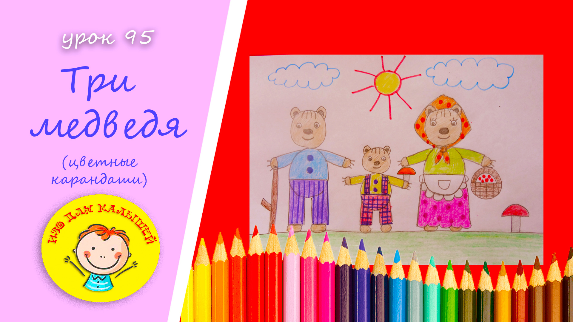 Рисуем ТРЕХ МЕДВЕДЕЙ .УРОК 95 Тема: "три медведя "- цветные карандаши