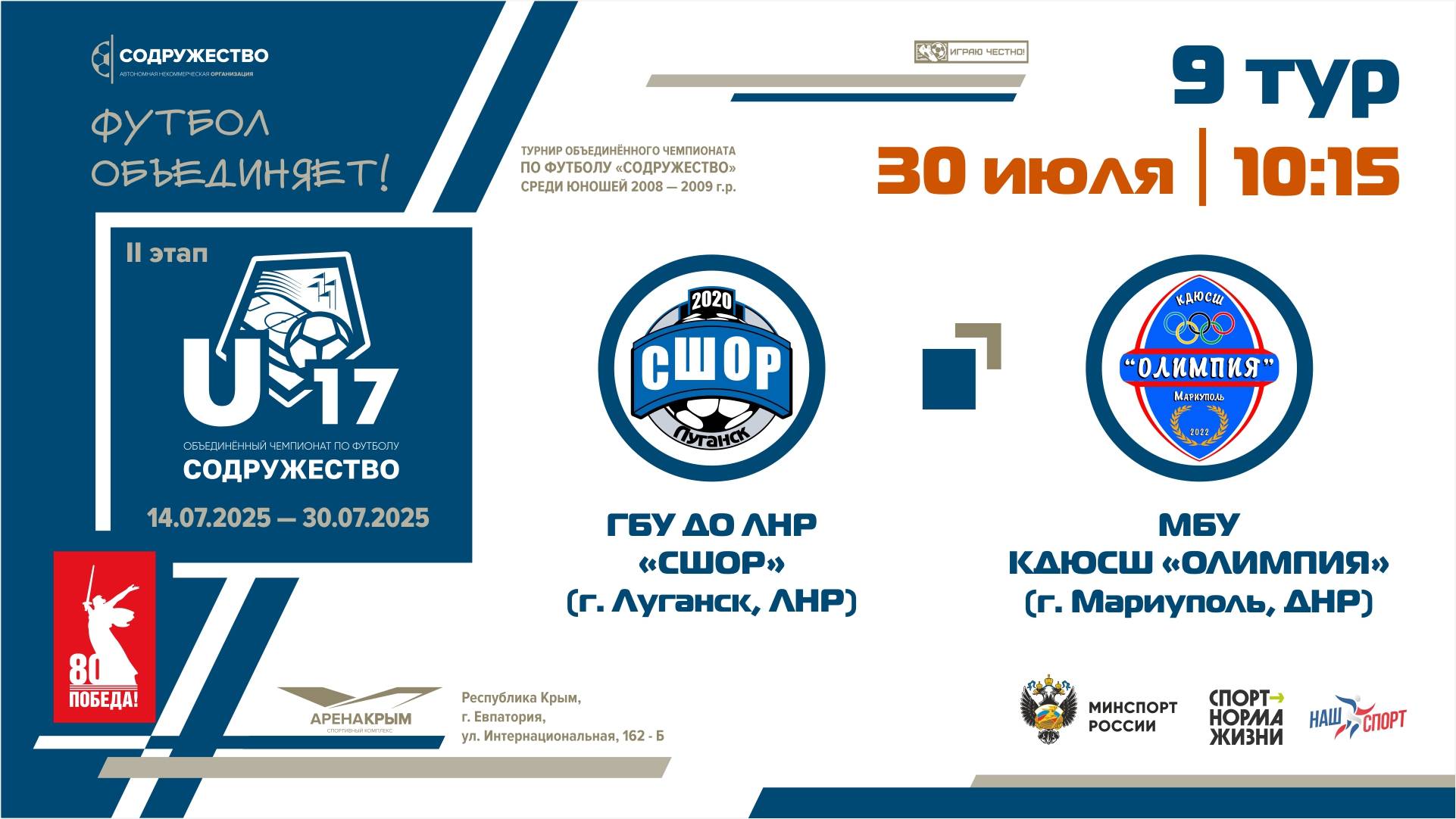 9 ТУР | U-17 | ГБУ ДО ЛНР «СШОР по футболу» (г. Луганск) - МБУ КДЮСШ «Олимпия» (г. Мариуполь, ДНР)