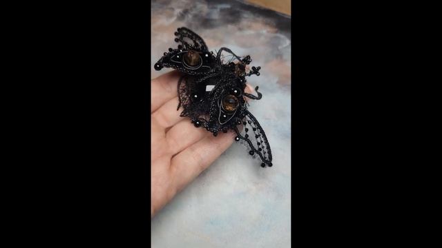 Брошь жук ручная вышивка натуральные камни