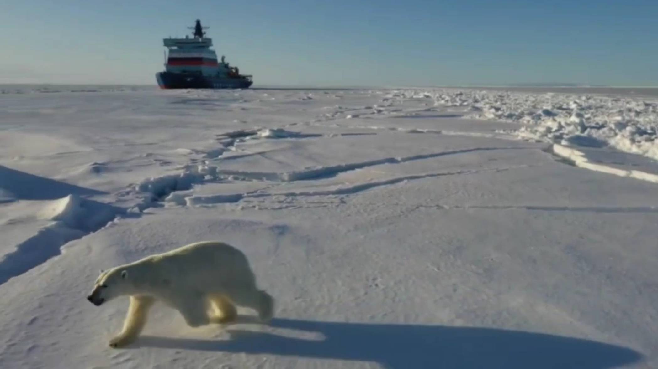 Белый медведь и ледокол