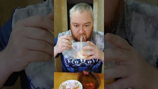 Ем грудинку с кетчупом. Также чёрный хлеб, огурец и капуста. Мукбанг, обжор. #мукбанг #обжор #грудин