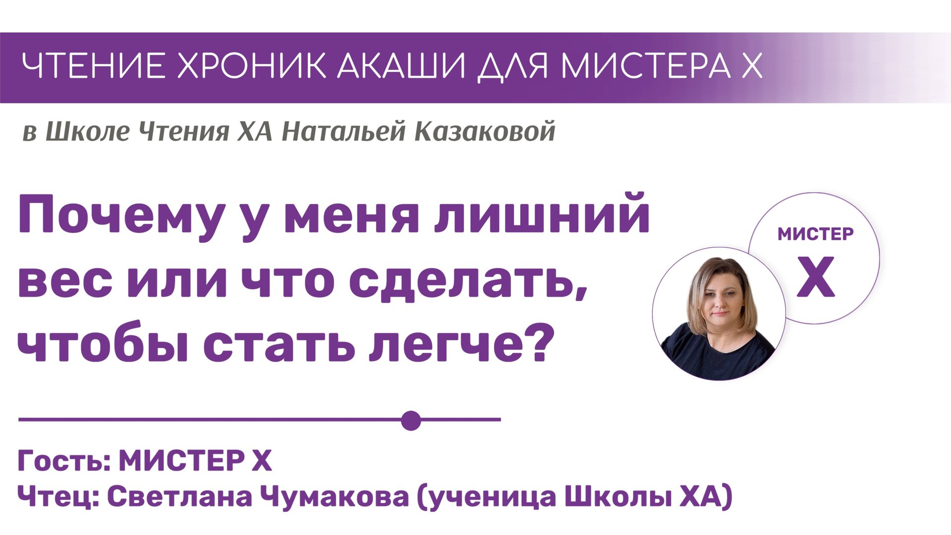 Ученики продвинутого уровня Школы Хроник Акаши Натальи Казаковой проводят Чтения Хроник Акаши для мистера Х. Стань мистером Х и получи ответ на свой вопрос. Каждую неделю своя тема. Вступай: https://t.me/+CF7Zelk1vbY4ODEy