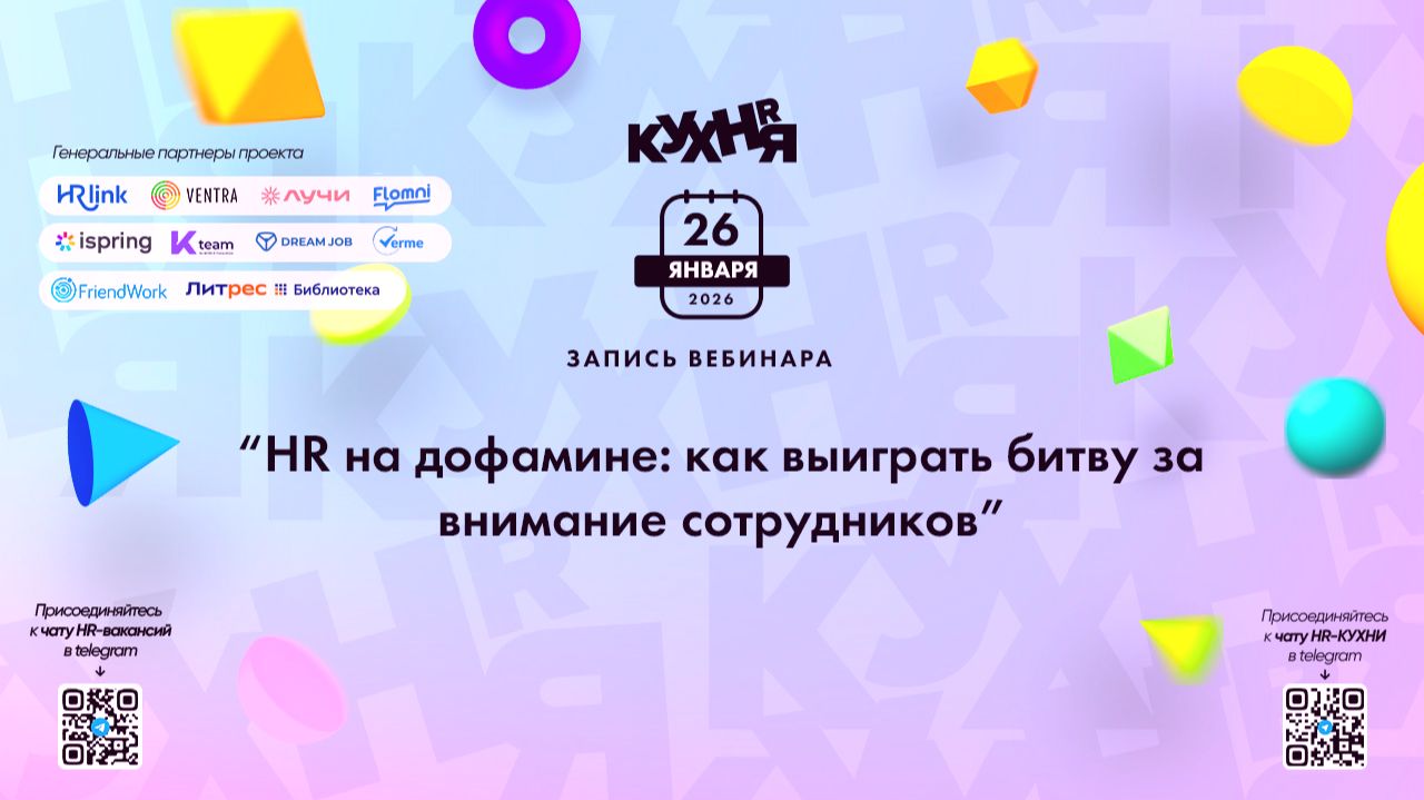 Присоединяйтесь к чатам и каналам HR-КУХНИ в телеграм: - Основной чат HR-КУХНИ в телеграм - https://t.me/+tYgAH0PgPQVkOWIy - Канал HR вакансий в телеграм - https://t.me/+CMNAN2u1hjo3M2Ri - Канал HR-EVENTS в телеграм - https://t.me/hr_kitchen - Канал HR JOURNAL в телеграм - https://t.me/hrkitchenjournal Полезные ссылки: - Каталог HR решений - https://hrkitchen.ru/exhibition - График конференций, бесплатных вебинаров, а также бесплатные курсы – https://hrkitchen.ru/ - Стать спикером HR-КУХНИ - https://hrkitchen.ru/speakers - Подписаться на полезную e-mail рассылку от HR-КУХНИ (новости, гайды, чек-листы, подарки от партнеров) - https://hrkitchen.ru/subscribe