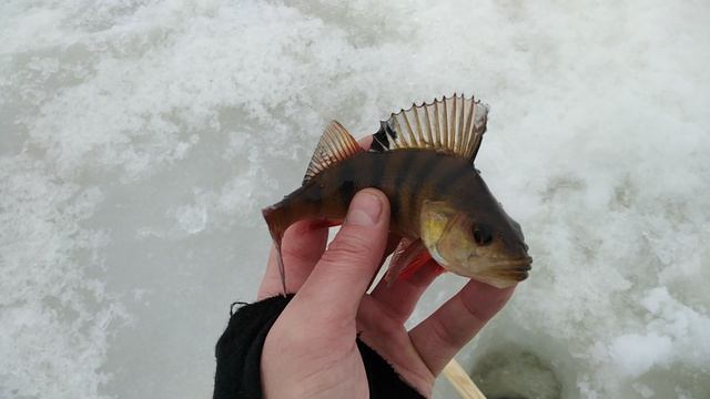 Поймал отпусти :)) Зачем такой малыш нужен :)) Зато порадовал поклёвкой #окуньнаблесну #зимняяблесна #зимняярыбалка #лёд2022
