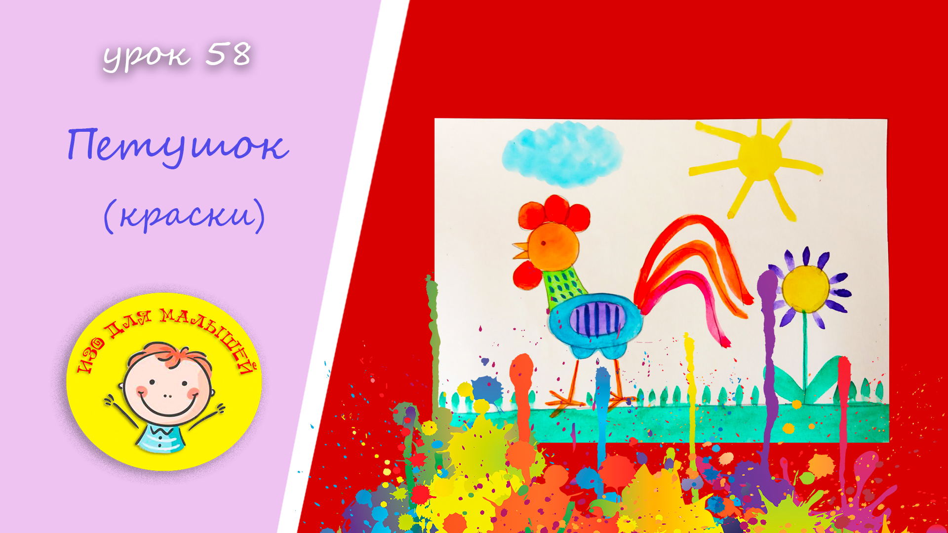 Как нарисовать ПЕТУХА красками. УРОК 58.Тема: "петушок"- краски