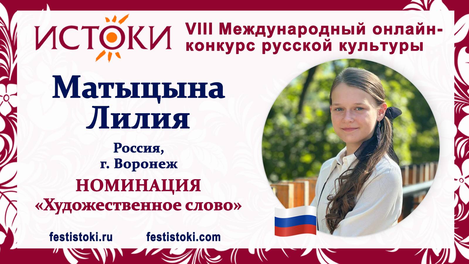 Участник VIII Международного онлайн-конкурса русской культуры "Истоки". Номинация "Художественное слово". Стихотворение "Кокетка и пчела". Автор Иван Иванович Дмитриев. Сайт: festistoki.ru / festistoki.com E-mail: festistoki@mail.ru