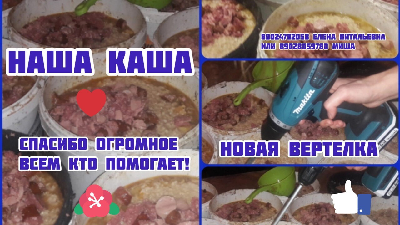 Спасибо огромное всем кто помогает! На этот раз наибольшее спасибо Екатерине В. за то что помогла нам купить новую вертелку для перемешивания каши собакам. Спасибо огромное всем кто помогает нам содержать и заниматься здоровьем животных о которых кроме нас с Вами больше некому позаботиться! Спасибо! Если Вам небезразлична судьба бездомных животных, то Вы всегда можете оказать помощь, связавшись с кураторами. Наша деятельность осуществляется своими силами за собственный счет при помощи благотворительных средств неравнодушных граждан. Для помощи финансово Вы можете перечислить любую сумму на карты: СберБанка 4279 0149 0098 6263 оформлена на Елену Витальевну Козлову, прикреплена к тлф 89024792058 Альфа-банка 2200 1509 2234 6710 оформлена на Любовь Вячеславовну К. прикреплена к тлф 89194556276 Не забывайте, пожалуйста, делать пометку в СМС "благотворительно и цель перевода". Электронные Кошельки: Yoomoney (Я.Деньги): 410013473262323 и Qiwi: +79028059780 Отчет по чекам https://vk.com/album213994132_290581704 Друзья, подписывайтесь на наш канал, не забывайте ставить лайки!