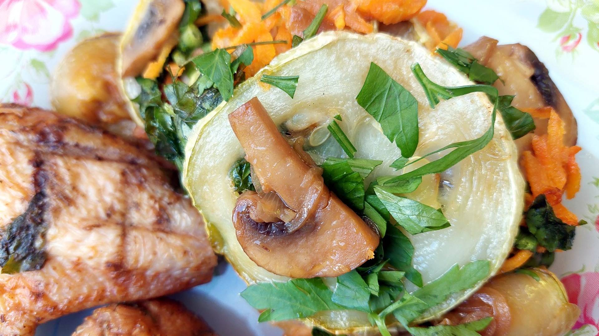 Запеканка с кабачками и шампиньонами. Прекрасное сочное сочетание.