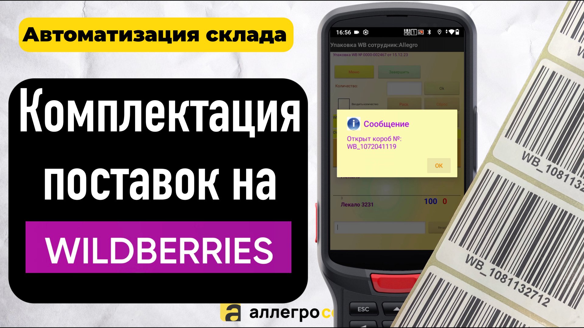 Если вы являетесь продавцом (селлером) на Wildberries, то для вас актуальна тема упаковки и поставки товара по схеме FBO. Для этого необходимо сформировать штрихкоды упаковочных коробов, а в дальнейшем загрузить в личном кабинете их наполнение. Чаще всего селлеры используют эксель и сканер для данной операции или вносят все руками. Это неудобно и влечет за собой ошибки по количеству и номенклатуре. С помощью программы для ТСД AllegroCount и модуля интгерации с Маркетплейсами на базе 1С Управление Торговлей 11 был автоматизирован процесс комплектации. Система полностью позволяет контролировать номенклатуру и количество в рамках поставки на Вайлдберрис. Также ранее мы рассказывали про варианты оптимизации работы на OZON в 1С с помощью Synchrozon и для МегаМаркет (Сбер): https://youtu.be/Iw92rIunlP4 https://youtu.be/4nCrVahJ0o4 Скачать программу AllegroCount: https://allegrosoft.ru/n/programma-dlya-tsd-allegrocount: AllegroSoft - https://allegrosoft.ru/ канал об автоматизации бизнеса ★Автоматизация магазина и склада, работа с маркировкой. ★Загрузка данных на ТСД из 1с. ★Ускорение комплектации и сбора заказов на 50%. ★Ускорение инвентаризации склада на 70%. ★Возможность автоматизации “ручных” процессов на складе/магазине. Заходите, смотрите и подписывайтесь на канал! Мы в интернете: ➧ Сайт - https://allegrosoft.ru/ ➧ Landing Page - https://sznak.ru/ ➧ Почта - info@allegrosoft.ru ➧ Телефон - +7 (499) 213-02-73 Наш канал: https://www.youtube.com/@allegrosoft_company