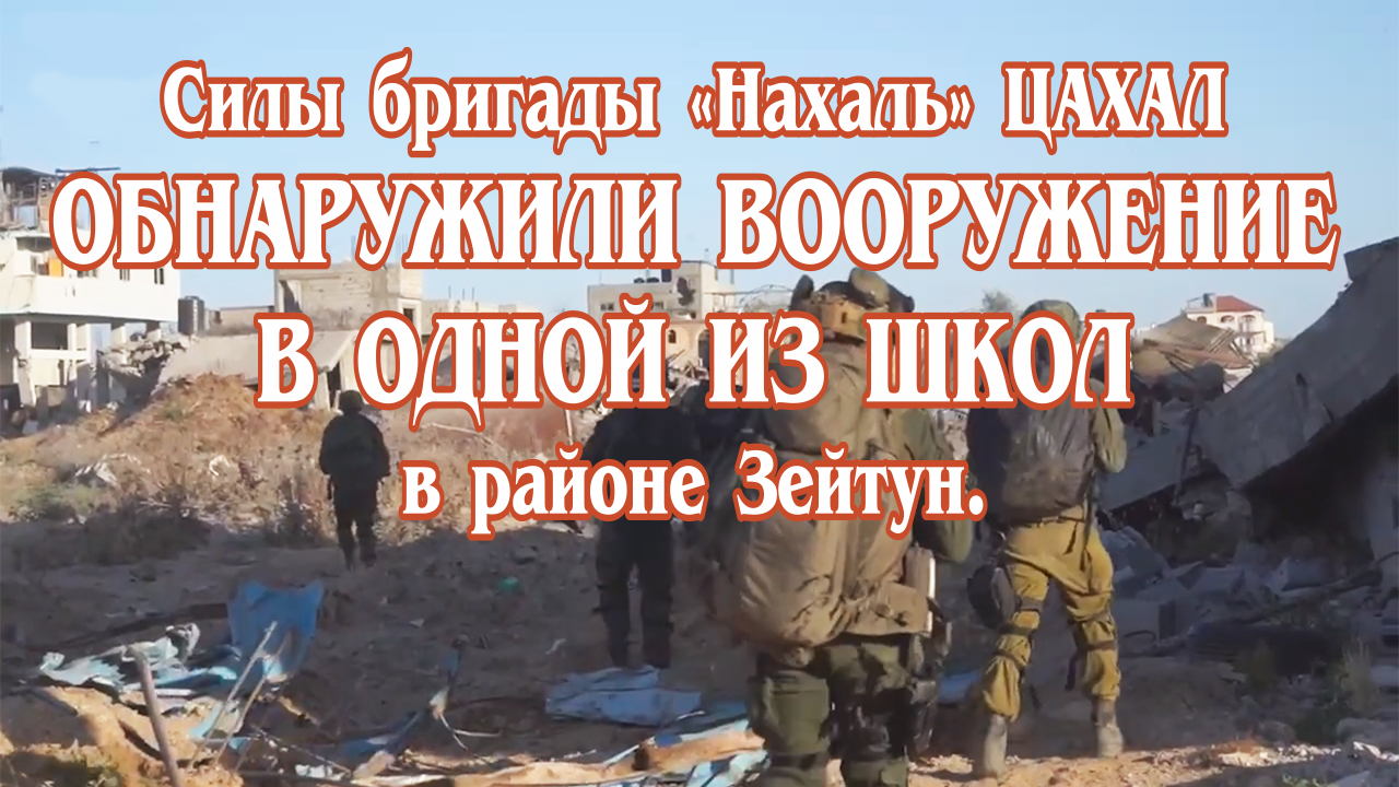 Силы бригады «Нахаль» ЦАХАЛ обнаружили вооружение в одной из школ в районе Зейтун.