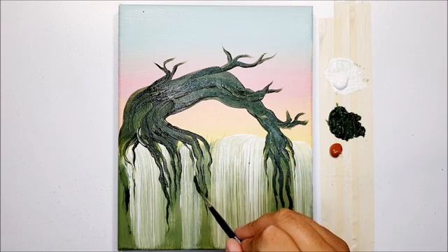ВОДОПАД ДЕРЕВА ВРЕМЕНИ - Уроки рисования акриловыми красками! Шаг за шагом! Живопись на холсте для