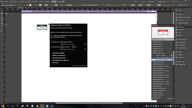 Виджет для вставки и подключения собственного кода в Adobe Muse. Позволяет быстро подключать JS, CSS файлы, добавлять файлы для передачи. Страница виджета: https://museone.ru/icode.html Группа в ВК: https://vk.com/museone Чат в Telegram: https://t.me/museone Разработка виджетов и сайтов на заказ: https://nikomedvedev.ru