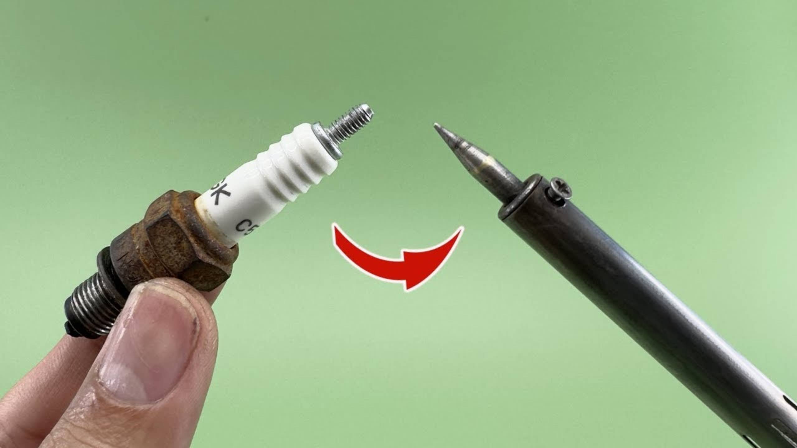 Вставьте свечу зажигания в электрический паяльник и полюбуйтесь результатом