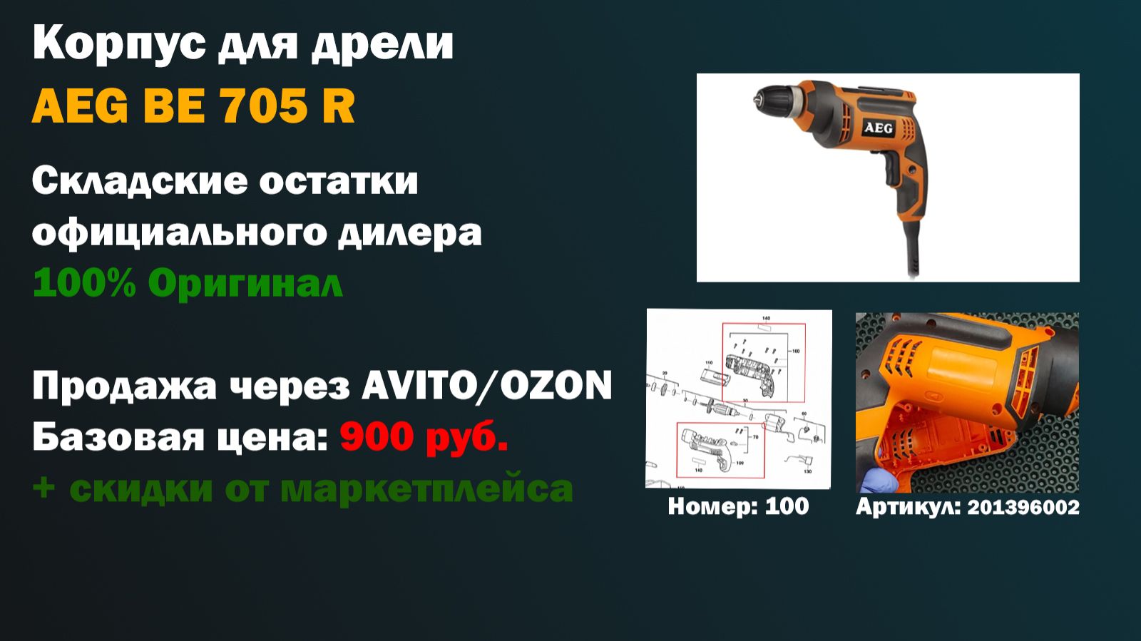 Оригинальный Корпус 201396002 для ремонта дрели AEG BE 705 R