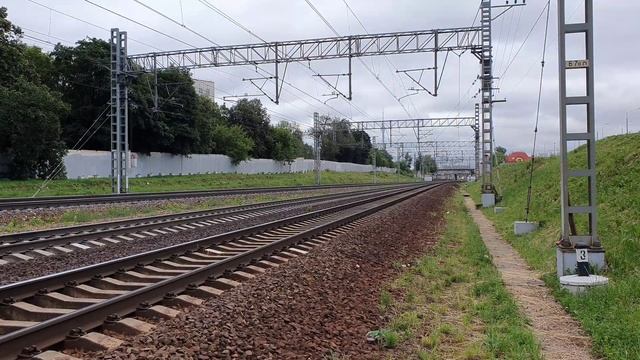 30 июня 2021 года перегон Москва-товарная - Ховрино Октябрьская железная дорога 0:01 - Невский Экспресс на Санкт-Петербург под ЧС200-006 поезд №748 в 13:47 0:34 - ЧС200-003 с поездом №737 Санкт-Петербург - Москва 1:14 - 20 вагонный Сапсан на Санкт-Петербург, ЭВС1-05+14 следует поездом №776 в 19:38 1:46 - Сапсан на Санкт-Петербург поезд №778 в 19:46 2:14 - ЭП2К-ххх загудел с поездом №92 Москва-Мурманск после пробы тормозов в 20:04 2:55 - БСка на вывозе, ТЭП70БС-237 летит с составом двухэтажного поезда Смена/А.Бетанкур на Москву в 20:08