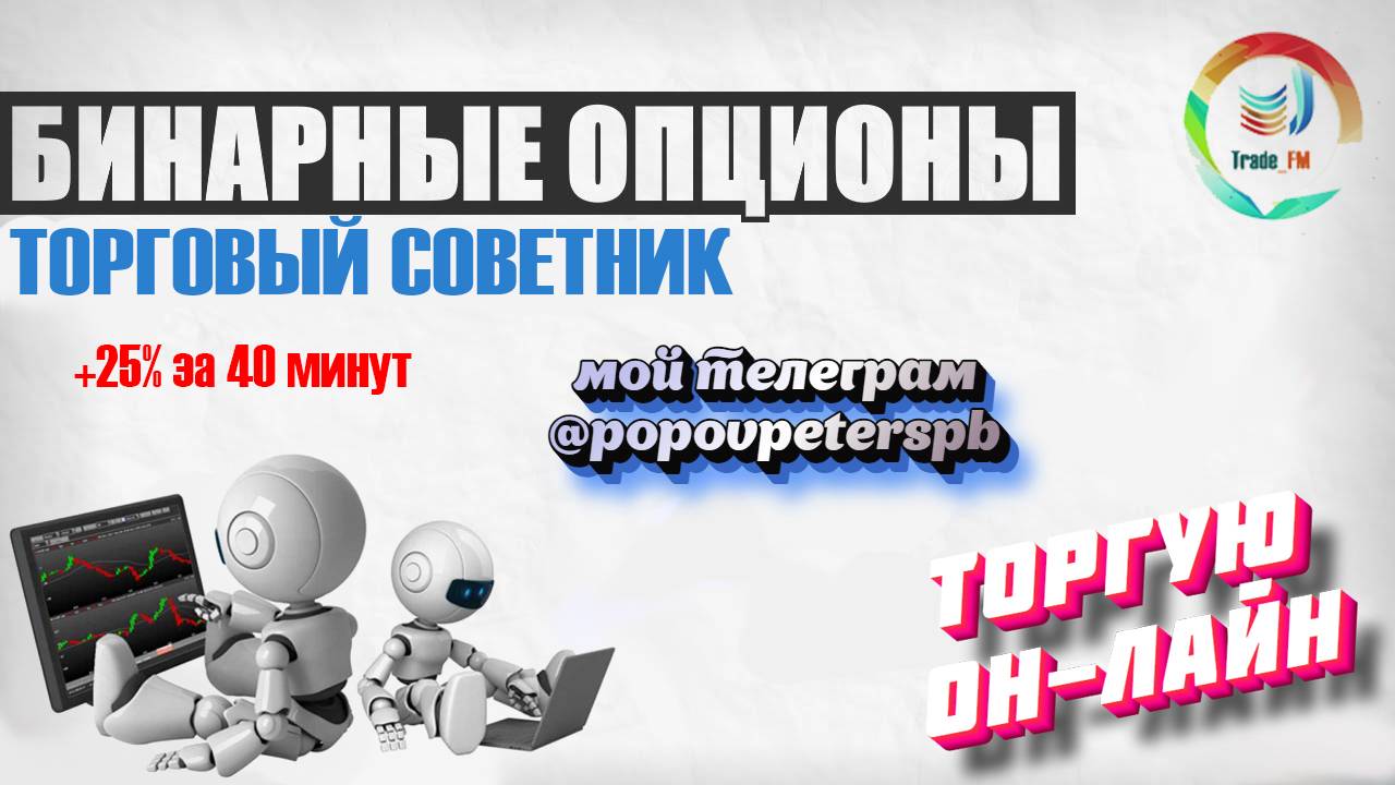 Тестирую нового бота для бинарных опционов. Пока полет нормальный, но так ли это будет и в другие дни. Время покажет, ну а пока , кому интересен такой советник- пишите в личные сообщения и подписывайтесь на канал в телегу... Регистрация у брокера для торговли на бинарных опционах: https://ru.gcoption.com/?note=6005329 Открытая ссылка на канал в ТЕЛЕГРАМ: https://t.me/Trade_fm_forex Телеграм: @popovpeterspb https://vk.com/trade_fm