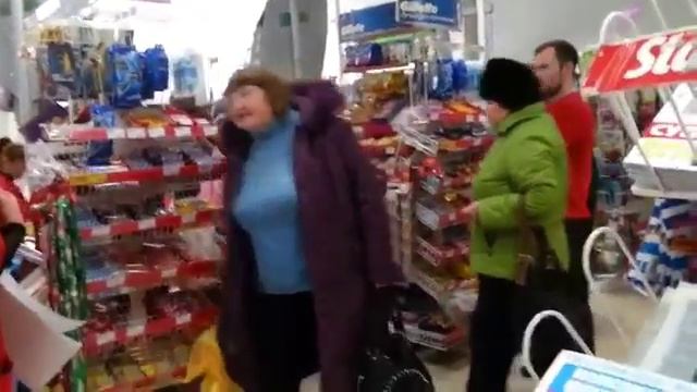 Как люди дуркуют в общественных местах. Вроде и прилично одета. Видео для впечатлений. Шабаш в магаз