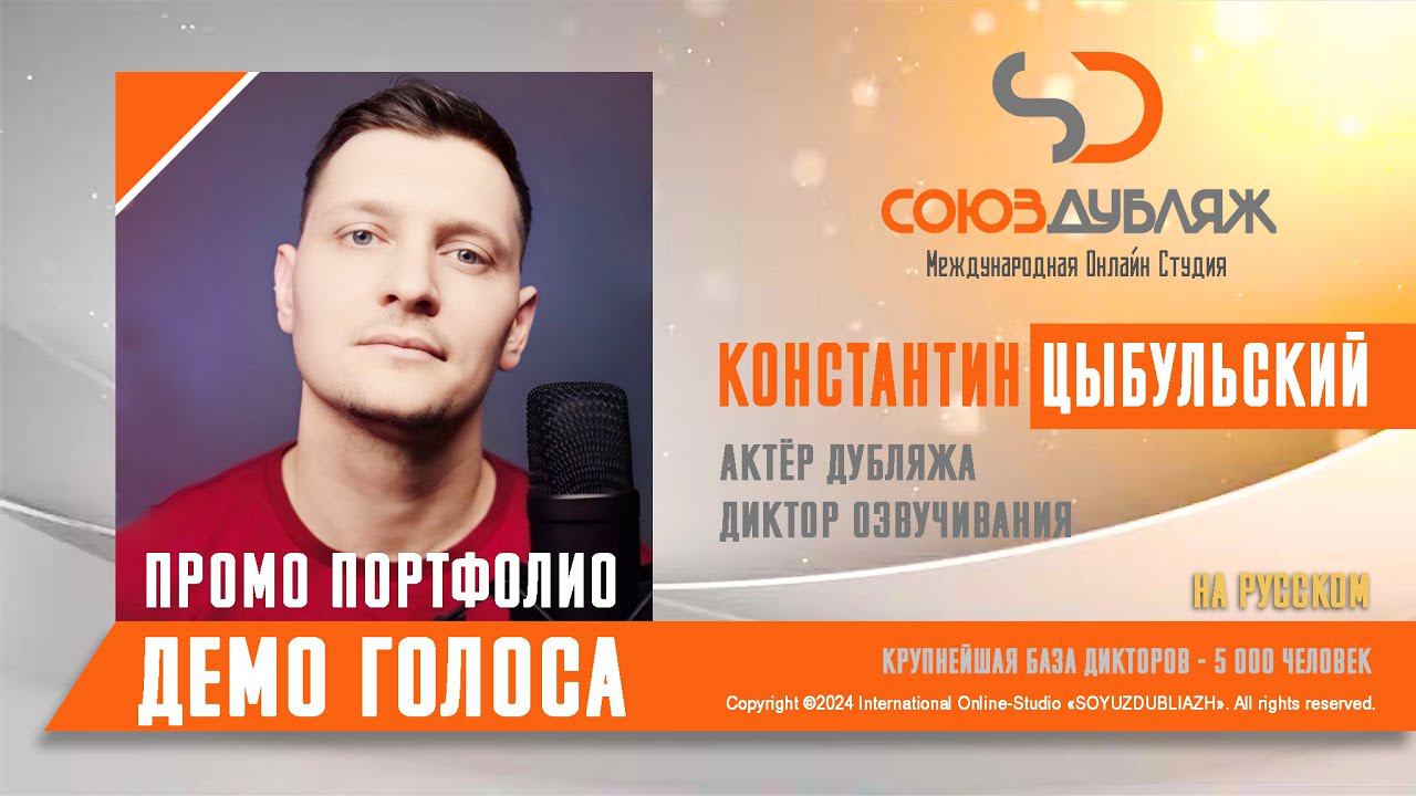 #СоюзДубляж #БазаДикторов #Озвучка Константин Цыбульский | ✔️Актёр дубляжа, диктор озвучивания. Международная Онлайн-Студия "СОЮЗДУБЛЯЖ" - профессиональная озвучка и дубляж. ▪️Рабочая группа в Телеграм: https://t.me/soyuzdubliazh ▪️Контакт для связи: https://t.me/SoyuzAdmin ▪️Подпишись:https://www.youtube.com/c/SOYUZDUBLIAZH ▪️Сайт: https://www.soyuzdubliazh.com/ Лучшие голоса для вашей аудиорекламы и видеороликов. База дикторов - 5 000 человек, профессионального уровня на ENG| FR| TR| RU| ISR| AZ| UA| KZ| UZ| языках. Мужские и Женские топовые голоса для озвучки любых проектов, таких как: Рекламы, Презентации, Фильмы, Сериалы, Игры, Мультфильмы, ТВ Шоу, Аудио-видео визитки. ✔️Сотрудничая с нами вы получаете свой проект под ключ, не выходя из дома или офиса. Наша слаженная команда из лучших дикторов, актёров озвучивания, режиссёров и звукорежиссёров в кратчайшие сроки озвучат или отдублируют ваш заказ на профессиональном уровне. Образцы работ нашего портфолио вы сможете посмотреть на канале СОЮЗДУБЛЯЖ. ВНИМАНИЕ: ✔️Мы приглашаем специалистов озвучки к сотрудничеству в нашей команде. Вы можете пройти по ссылке в наш телеграм канал и связаться с Админом для обсуждения. ✔️Всем заказчикам подобных медиа проектов по озвучки и дубляжу фильмов, сериалов, документалок обращаться непосредственно к Админу Телеграм группы СОЮЗДУБЛЯЖ, пройдя по ссылке: Проходи по ссылке: https://t.me/soyuzdubliazh International Online-Studio SOYUZDUDLIAZH presents a highly professional approach in voice-over and dubbing. ▪️Our working group https://t.me/soyuzdubliazh ▪️Chief manager https://t.me/SoyuzAdmin ▪️Follow https://www.youtube.com/c/SOYUZDUDLIAZH ▪️Web: https://www.soyuzdubliazh.com/ We offer You the best Voices for your Audio commercials and Video`s. Our Database contains over 5 000 voices of native speakers and high-class foreign language specialists in ENG| FR| TR| RU| ISR| AZ| UA| KZ| UZ|. Male & Female top level voices for all the variety of dubbing projects such as commercials, presentations, movies, TV-series, video and computer games, cartoons, TV-shows, audio & video portfolio’s – all in one place. As your business partner we guarantee a turn-key project without you leaving your house or office. Our target is to make sure that the dubbing of your project is made as quick as possible by a well-coordinated and professional team of the best speakers, film and sound directors. To whom it may concern! We invite dubbing specialists to join our team. Please contact our manager on Telegram https://t.me/soyuzdubliazh