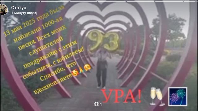 Ура! Ура! Ура! Всех с юбилеем моего творчества! ВСЕХ с 1000-ой песней. 13 мая 2025🎆🥂🤗🎸
