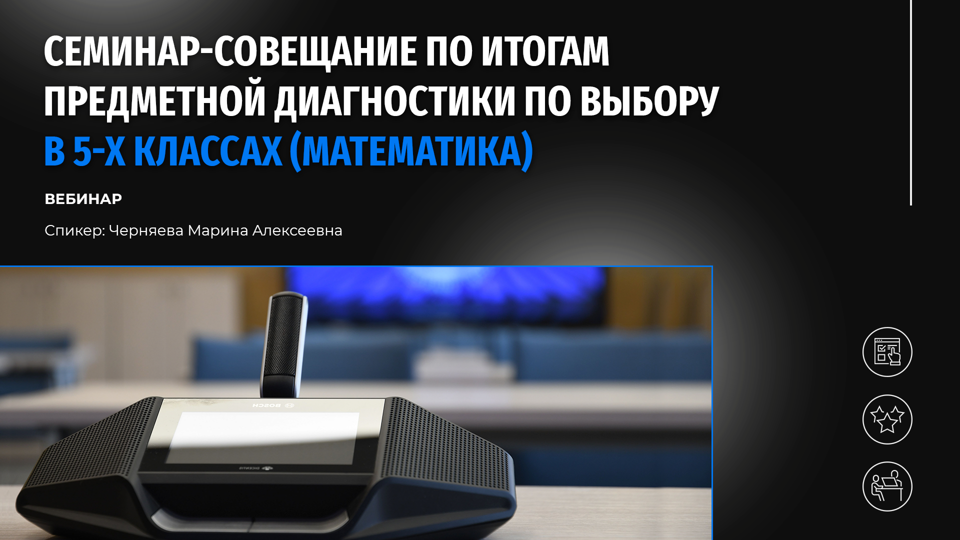 Приглашаем заместителей директоров образовательных учреждений по управлению качеством образования, учителей математики, преподающих в 5-х классах, и всех желающих посмотреть видеоматериалы, посвященные итогам предметной диагностики по математике в 5-х классах общеобразовательных организаций города Москвы. Ведущий специалист Московского центра качества образования Марина Алексеевна Черняева подвела итоги диагностики, сделала обзор тем, успешно освоенных школьниками, и тем, вызвавших затруднения, дала методические рекомендации по организации корректировочной работы.