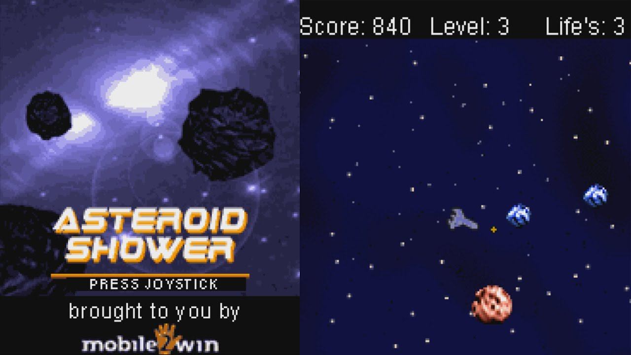 "Asteroid Shower" - Your spaceship is on a mission to Jupiter after successfully refueling at mars. Suddenly your spacecraft gets hit by a drifting asteroid and its vital components are scattered across the asteroid belt. As you drift without an engine, you have only a few jet rockets to propel yourself. Shoot the onslaught of the asteroid shower to protect yourself. You are on your own Captain. After successfully refuelling at mars spacecraft gets hit by a drifting asteroid! As you drift without an engine,you have only a few jetrockets to propel yourself and shoot against the onslaughtof the asteroid shower. Controls: Move anticlockwise LEFT or key 4. Move clockwise RIGHT or key 6. Move forward UP or key 2. Shoot FIRE or key 5 DOWNLOAD GAME: https://phoneky.com/games/?id=j1j3872 ============================================================================ #asteroidshower #mobile2win #javagames #javaигры #игра #мобильнаяигра #phonegame #mobilegame #oldgames ஜ════════ஜ۩ PLEASE SUPPORT CHANNEL | ПОДДЕРЖИТЕ КАНАЛ https://youtube.com/JavaGamesHD/join https://patreon.com/javagames https://donationalerts.ru/r/javagamer ۩ஜ════════ஜ -~-~~-~~~-~~-~- Please watch: "Prince of Persia: Harem Adventures Siemens M55 Java Game - FULL WALKTHROUGH (Gameloft 2002 year)" https://www.youtube.com/watch?v=ibHSsUJsFYM -~-~~-~~~-~~-~- Our Group in VK | Наша группа ВКонтакте https://vk.com/javagameplay ◆► SUBSCRIBE!!! ПОДПИШИСЬ!!! ★★★★★ https://youtube.com/JavaGamesHD?sub_confirmation=1 https://boosty.to/javagames
