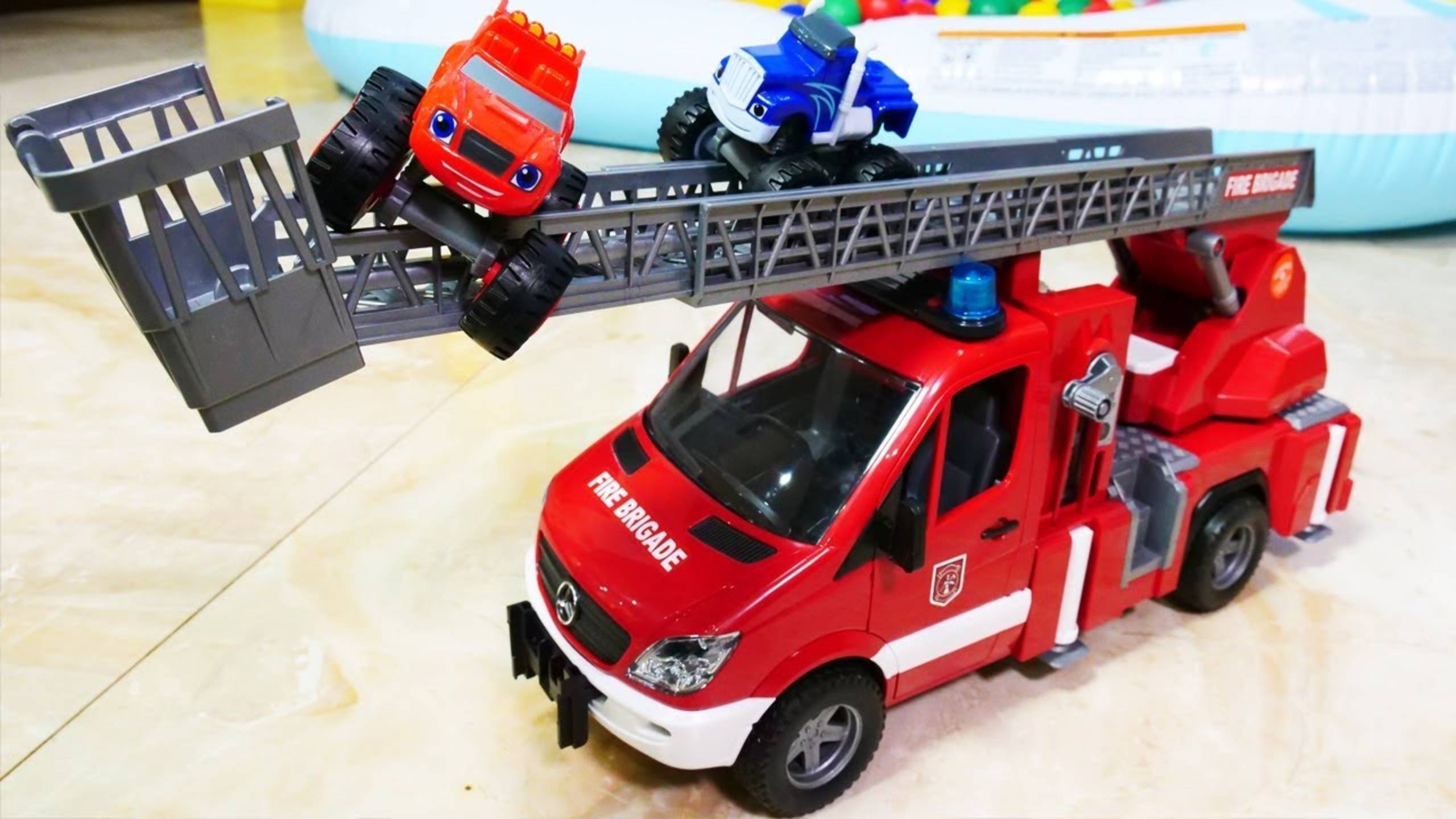 Видео про машинки. Вспыш и Крушила: игрушки в бассейне с шариками! Пожарная машина - Распаковка