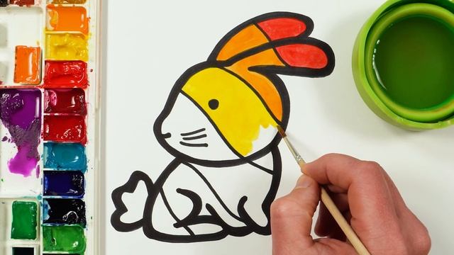 Радужный кролик! Рисование и раскраска для детей и малышей! Основы рисования для детей
