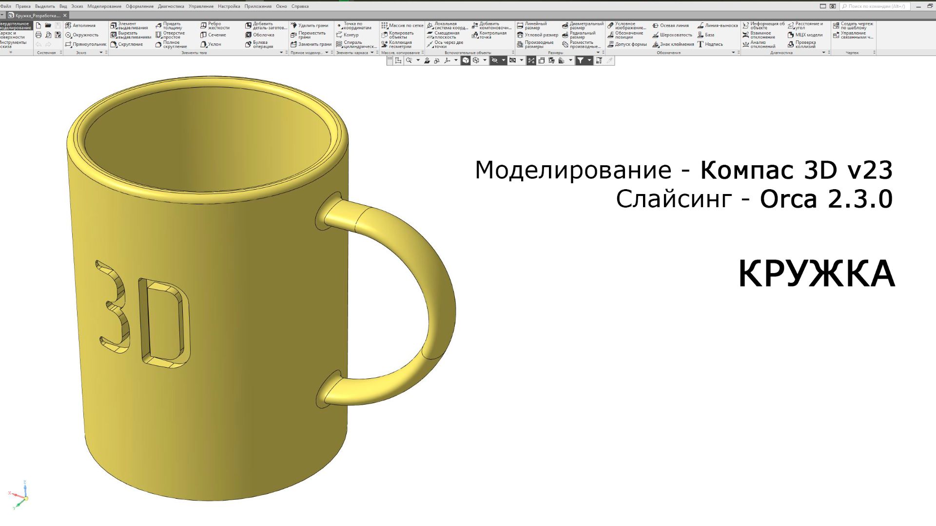 Компас-3D v23. Orca Slicer 2.3.0. Кружка