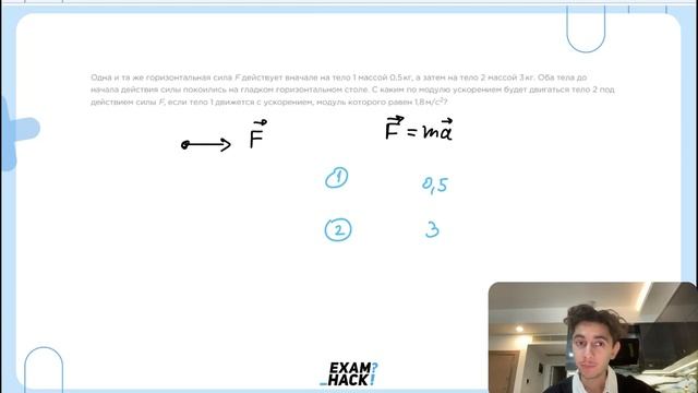 Одна и та же горизонтальная сила F действует вначале на тело 1 массой 0,5 кг, а затем на - №25573
