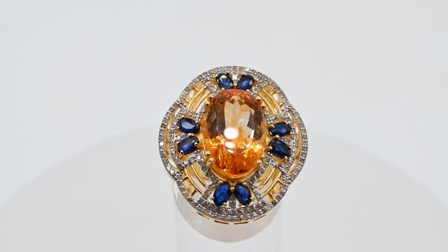 Кольцо С925 с цитрином, сапфиром и алмазами, размер 18, 15,3г Арт: с125038-18