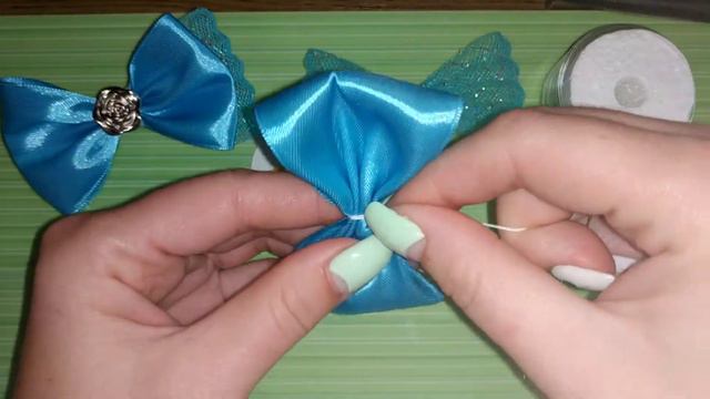 Для создания таких бантиков использовался регилин и атласная лента шириной 5см. Длинна отрезков 15 см.