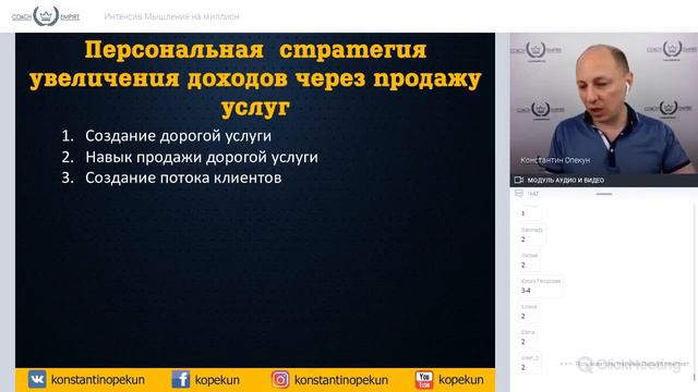 ✓ Скачайте план продающей консультации ► http://bit.ly/2rwsadG Главная стратегия, которую мы сегодня с вами разберем, что вы сразу же учитесь и обучаетесь создавать дорогие услуги. Так вы идете максимально кратчайшим путем и так вы можете очень быстро, можно сказать, что это квантовый скачок, начать зарабатывать большие, достойные деньги и с помощью этого выйти на доход в 1 миллион рублей. И давайте рассмотрим остальные элементы, что вам для этого нужно. Следующее, что нужно – это навык продажи дорогой услуги. То есть, ваша задача не просто создать эту дорогую услугу, но и научиться, натренироваться эту услугу продавать. Часто бывает так, что многие ученики и наши, в том числе, и вообще коучи, психологи, эксперты думают следующим образом, что «мне не хватает клиентов, а если бы у меня были дополнительные клиенты, то я бы быстро заработал, например, тот же миллион». Поставьте плюсики те, кто так думает. Я сейчас, если вы так думаете, немножко развею это ваше утверждение. В чем оно заключается? Очень просто себя протестировать. Представьте себе, что если прямо сейчас, допустим, я на вас направляю поток ваших потенциальных клиентов, то, скорее всего, вы не сможете этим клиентам сделать хорошее, качественное предложение. Поставьте сейчас, пожалуйста, двоечку, кто чувствует, что ваши навыки продаж еще находятся в стадии того, что вам их нужно развивать и развивать для того, чтобы даже при хорошем потоке клиентов мы могли смело и уверенно эти услуги продавать. Поэтому второй элемент – это продажа услуг. Вам понравилось видео «Стратегия увеличения доходов через продажу услуг»? Ставьте ЛАЙК и делитесь с друзьями https://www.youtube.com/watch?v=5bcBGrUNkH4 Подписывайтесь на канал, чтобы первыми получать новые видео https://goo.gl/pZBWN9 Ещё интересные видео: От чего нужно освободиться, чтобы достичь своих целей https://www.youtube.com/watch?v=kxqnai46kZw Как увеличить доход в 3 раза за 2 месяца с помощью Платины https://www.youtube.com/watch?v=dbrz8ylrXWo Как увеличить свои доходы в 7 раз с помощью Платины https://www.youtube.com/watch?v=wIu-UzNt1UI Финансовая техника «1 к 10» Как увеличить доход https://www.youtube.com/watch?v=l_esDz3Pe4E Канал для коучей и консультантов КАК ПРОДАВАТЬ КОУЧИНГ ДОРОГО? КАК УВЕЛИЧИТЬ ДОХОД ОТ 2-Х ДО 10-ТИ РАЗ. Более 200 видео на темы: • Пошаговая стратегия продаж коучинга и консультаций дорого. • Сценарий первой коучинговой сессии, после которой у вас покупают дорогие услуги. • Как привлекать больше клиентов? • Как создать поток клиентов, стать «магнитом» для клиентов? • Эффективные техники и приемы, как продавать коучинг и консультации дорого? • Уверенность, профессионализм и экспертность коуча. • Техники обработки возражений клиентов. Автор канала «Империя коучей» Константин Опекун - Коуч, тренер международного уровня, эксперт по стремительному увеличению дохода. Автор методики стремительного увеличения дохода на коучинге и консультациях. #КонстантинОпекун #КакПродаватьКоучинг #КакПродаватьСвойКоучинг #КакПродаватьКоучингДорого #ИмперияКоучей