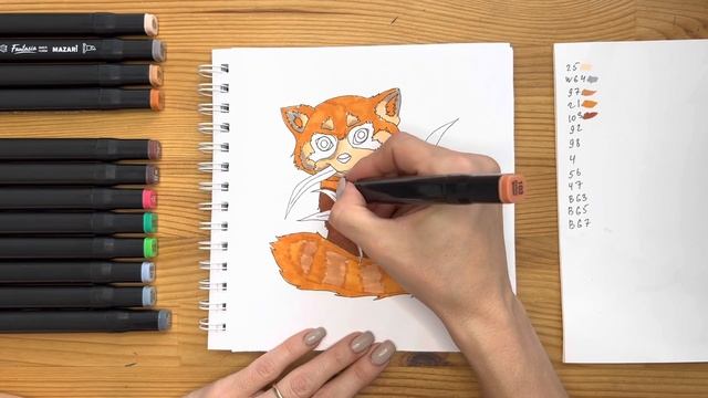Как нарисовать красную панду карандашом и скетч маркерами | Рисунок для детей поэтапно и легко