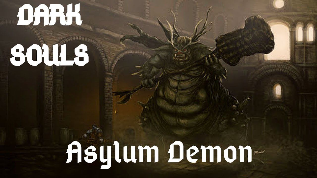 The large demon found during the tutorial in the Northern Undead Asylum. This boss is very similar to the Vanguard in Demon's Souls in both attack style and appearance in the story. After escaping from your cell and lighting the first bonfire, the next step is to open a large set of doors leading to another courtyard, surrounded by large vases. If you stand in the doorway and look up, you will see the Asylum Demon waiting above the area at the far end. As you enter the room, he leaps down. You may either fight him then or escape via a gate that closes on crossing it, on the left side of the area. If you choose to evade, you will still have to face him a little later, but with the benefit of having more equipment. During the second encounter, you will find yourself on a platform above him, giving you the opportunity to perform a powerful plunging attack to radically reduce his health and even the odds. Killing the asylum demon during the first encounter(not escaping through the door) will grant you the Demon's great hammer as discussed below, while killing him during the second encounter will not.