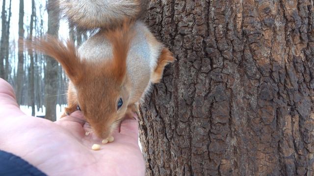 Покормил двух ручных незнакомых белок